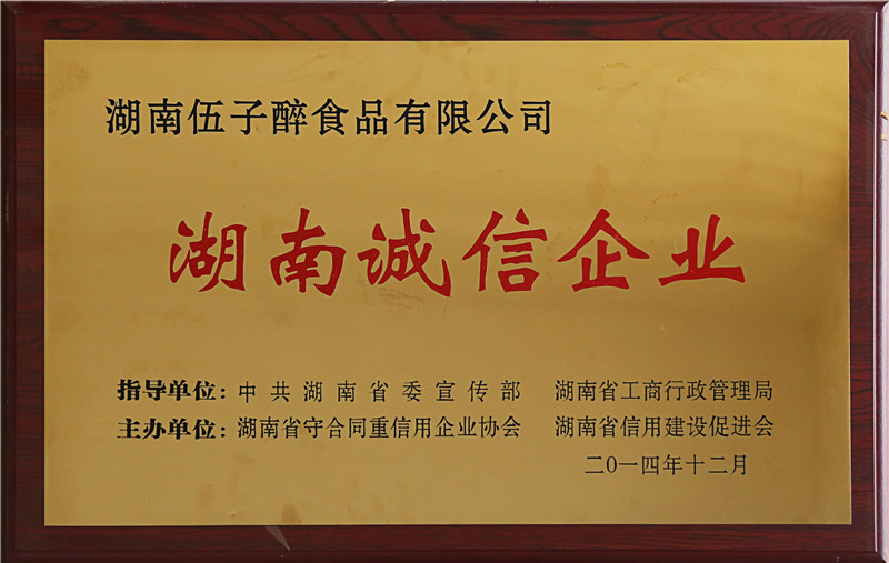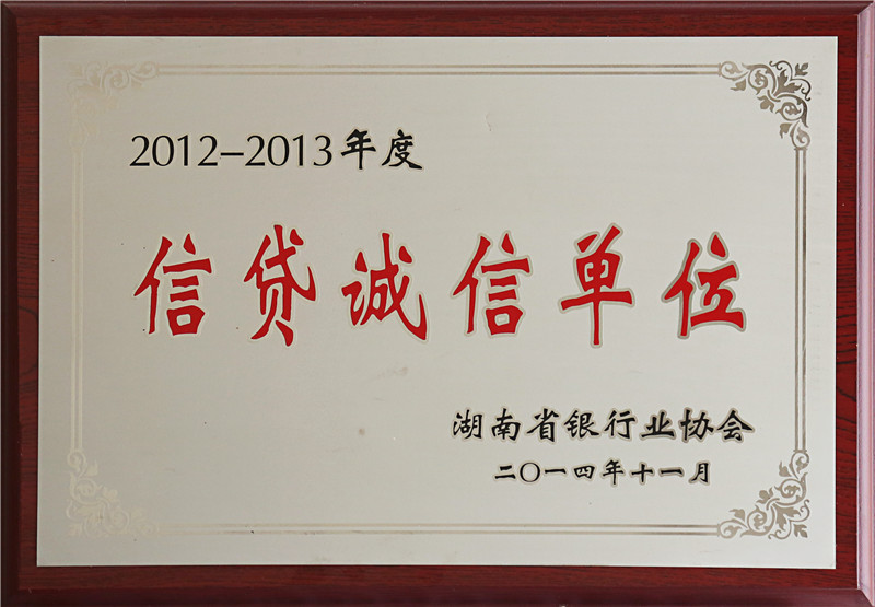 頒獎(jiǎng)名稱:湖南誠(chéng)信企業(yè) -