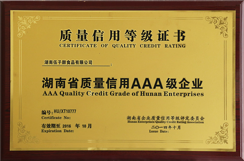 頒獎(jiǎng)名稱:湖南省質(zhì)量信用AAA級(jí)企業(yè) -