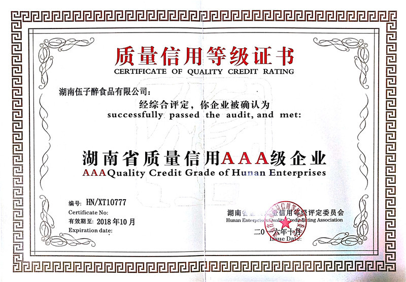頒獎(jiǎng)名稱:質(zhì)量信用等級(jí)認(rèn)證證書(3A) -