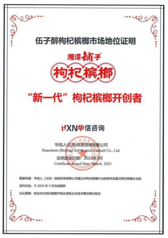 頒獎(jiǎng)名稱:“‘新一代’枸杞檳榔開創(chuàng)者” -