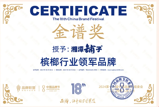 頒獎名稱:檳榔行業(yè)領(lǐng)軍品牌 -